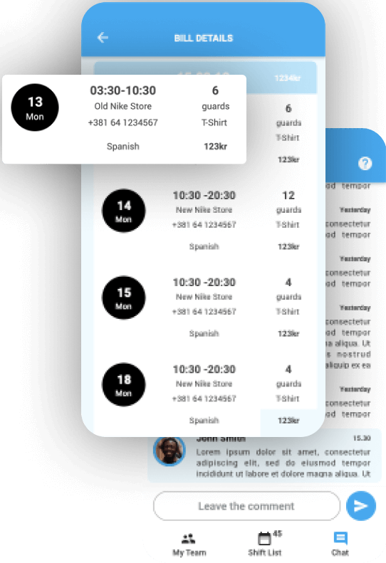 While waiting for the shift to start and during the shift, team can chat inside the app.